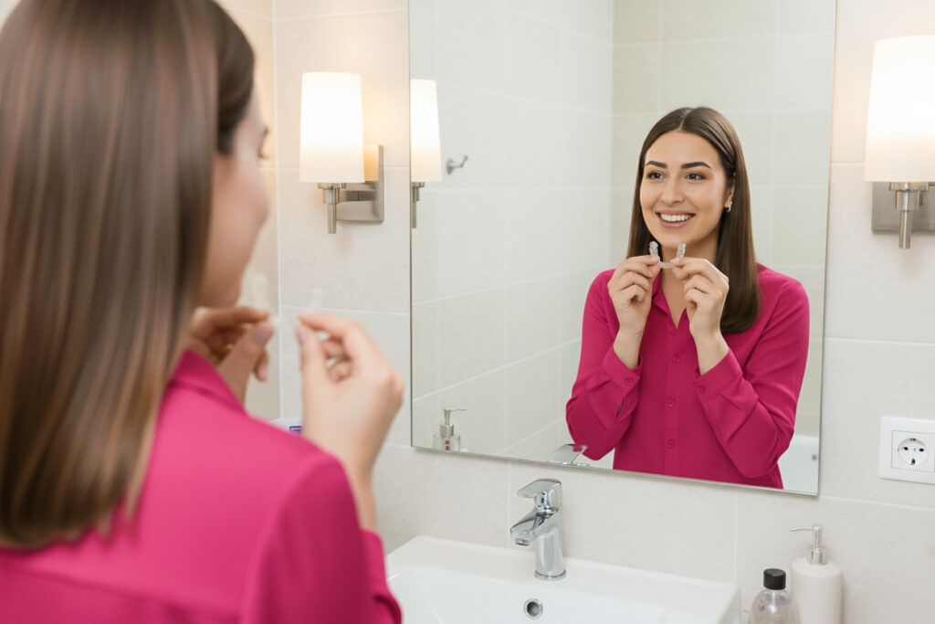 Les aligneurs doivent être retirés avant chaque repas ou boisson (sauf l’eau). Cela permet d’éviter les taches, les déformations ou la casse. Après avoir mangé, il est conseillé de se brosser les dents avant de remettre vos aligneurs.